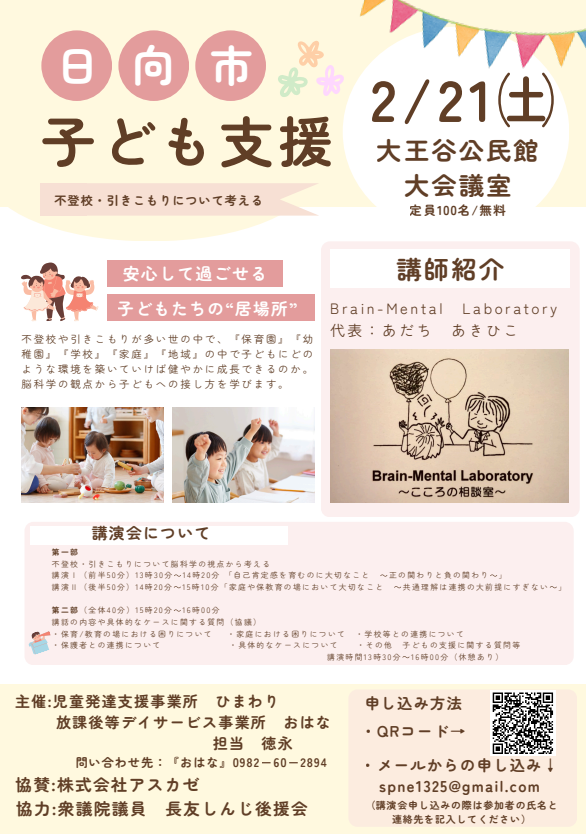 子どもに携わる仕事や子育て中の親にとって有意義な時間になればと思っています。